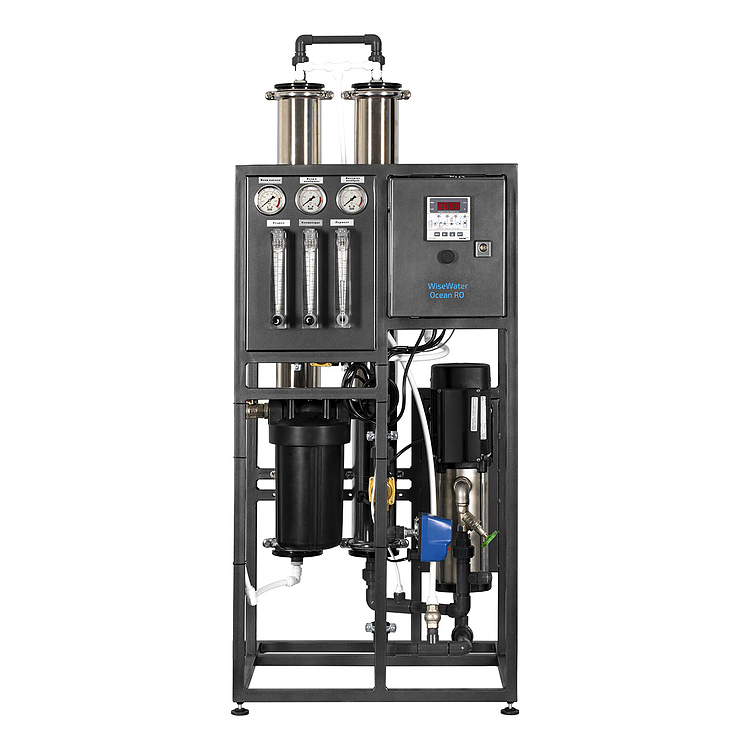 Обратноосмотическая установка WiseWater используется в загородных домах, кафе, ресторанах, пивоварнях, пекарнях, лабораториях и промышленных объектах для снижения солесодержания и удаления ионов минеральных веществ и тяжелых металлов в системах подготовки воды для хозяйственно-питьевых нужд, водоподготовки паровых котлов и парогенераторов. Модель оснащена полуавтоматическим управлением с использованием регулирующих вентилей. Бесшовные корпуса мембран с торцевыми входами выполнены из высококачественной нержавеющей стали. Технология низконапорного обратного осмоса основана на прохождении исходного потока воды под внешним давлением через специальный полупроницаемый барьер - мембрану, обладающую свойством селективности по отношении к растворенным солям. Происходит разделение исходного потока воды на две составляющие - пермеат, представляющий собой обессоленную воду, и концентрат - воду с повышенным по сравнению с исходным солесодержанием.